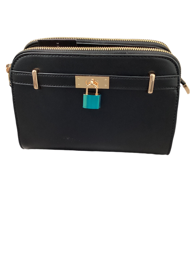 "Add some structure (and security!) to your on-the-go style with this playful crossbody bag featuring not one, but two zip closures and a trendy lock accent. Perfect for keeping your essentials close at hand (or hip), this bag has you covered in style."